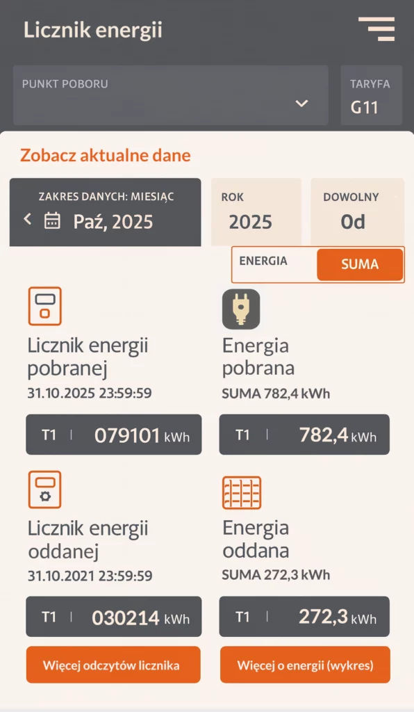 • energii pobranej (import) i oddanej do sieci (eksport),